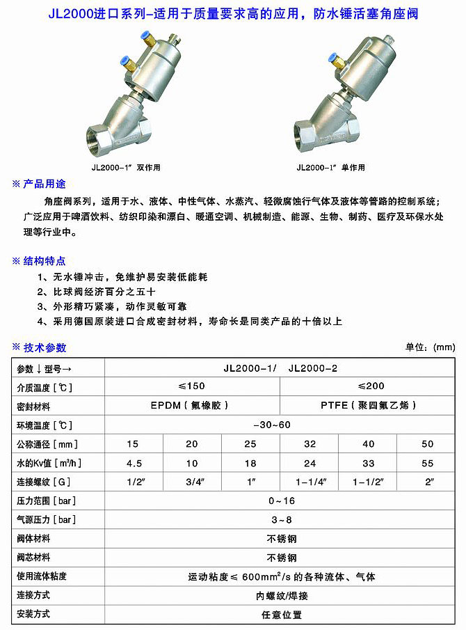 2000單作用角座閥